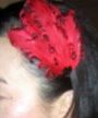 Below you can see Mrs. Hot Wings modeling the veil. The bachelorettes’ feather pieces look similar to the headband I made for the guests, except with black and white feathers instead of red and black.