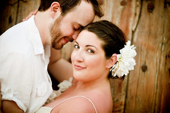 Short, tulle veils are my favorite kind of veil because I think they look fun and sassy. Here’s my friend Amy (who’s quite a sass herself) wearing a shorter veil at her Ojai wedding.