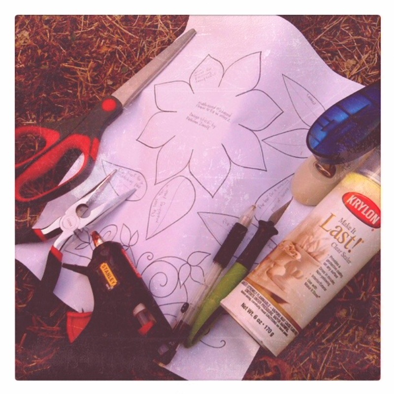I found a flower PDF template from Mel Stampz since I’m not good at freehand drawing. I followed Mark Mantano’s instructions except I used a razor to cut out the flower instead of scissors. This allowed me to cut out all six flowers at the same time and smooth out some of the rough edges with the scissors. I traced out a circle the size of a pint glass bottom and cut slits into it for the stamen.