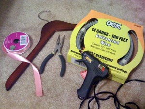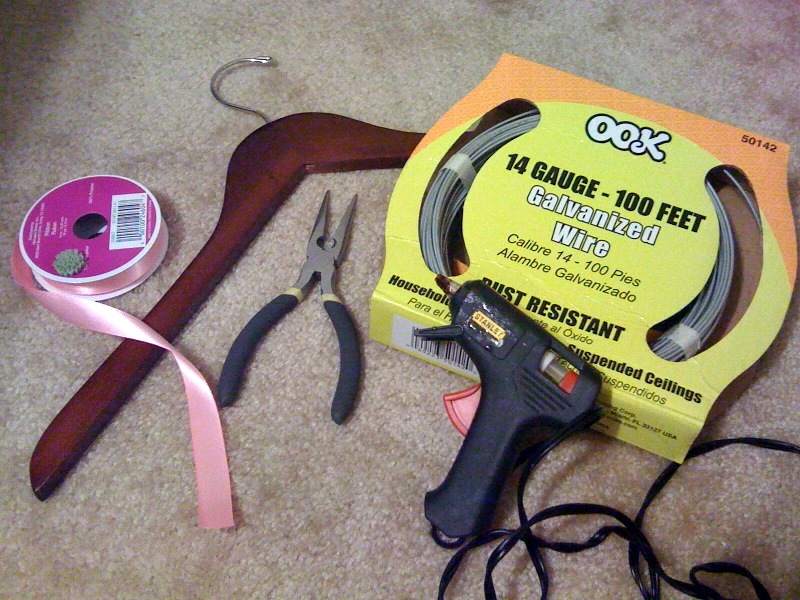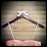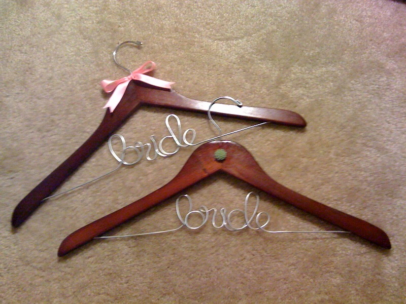 This past weekend, our friends, Miah and Christie, hosted a wedding shower. I was out of town, but my roomie/bf represented us at the shindig. Along with the standard Target registry gift, I thought it would be nice to make Christie one of those bridal hangers I’ve seen on Etsy. Plus I could make one for Kim too.