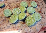 I’m excited to be helping Lindsay with some of her wedding planning and decorations. Yay, my first gig! Her theme is “Garden Party” so friends were preparing some of the decor including: