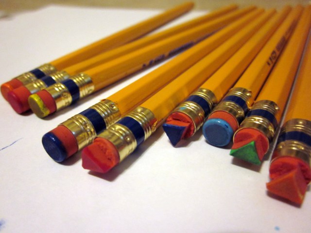 For stamping, use the eraser end of a pencil for circle stamps or cut out shapes using a craft knife. (I went with circles and triangles—stars and hearts looked a little too cheesy).