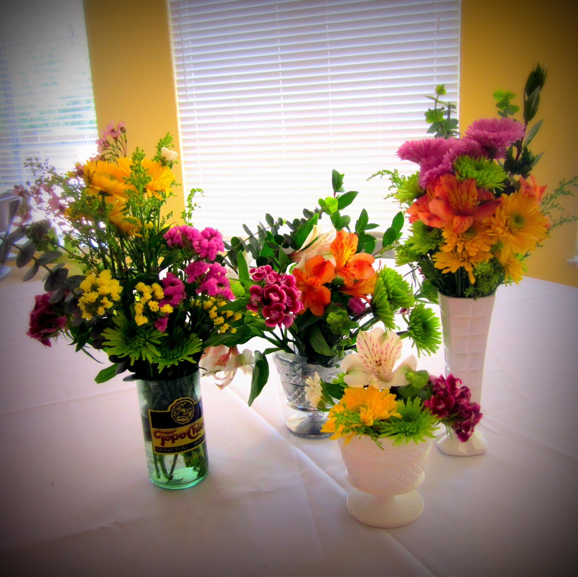 I bought flowers from Central Market, and everyone used their creativity to make what spoke to them. All the mini-arrangements turned out nicely.
