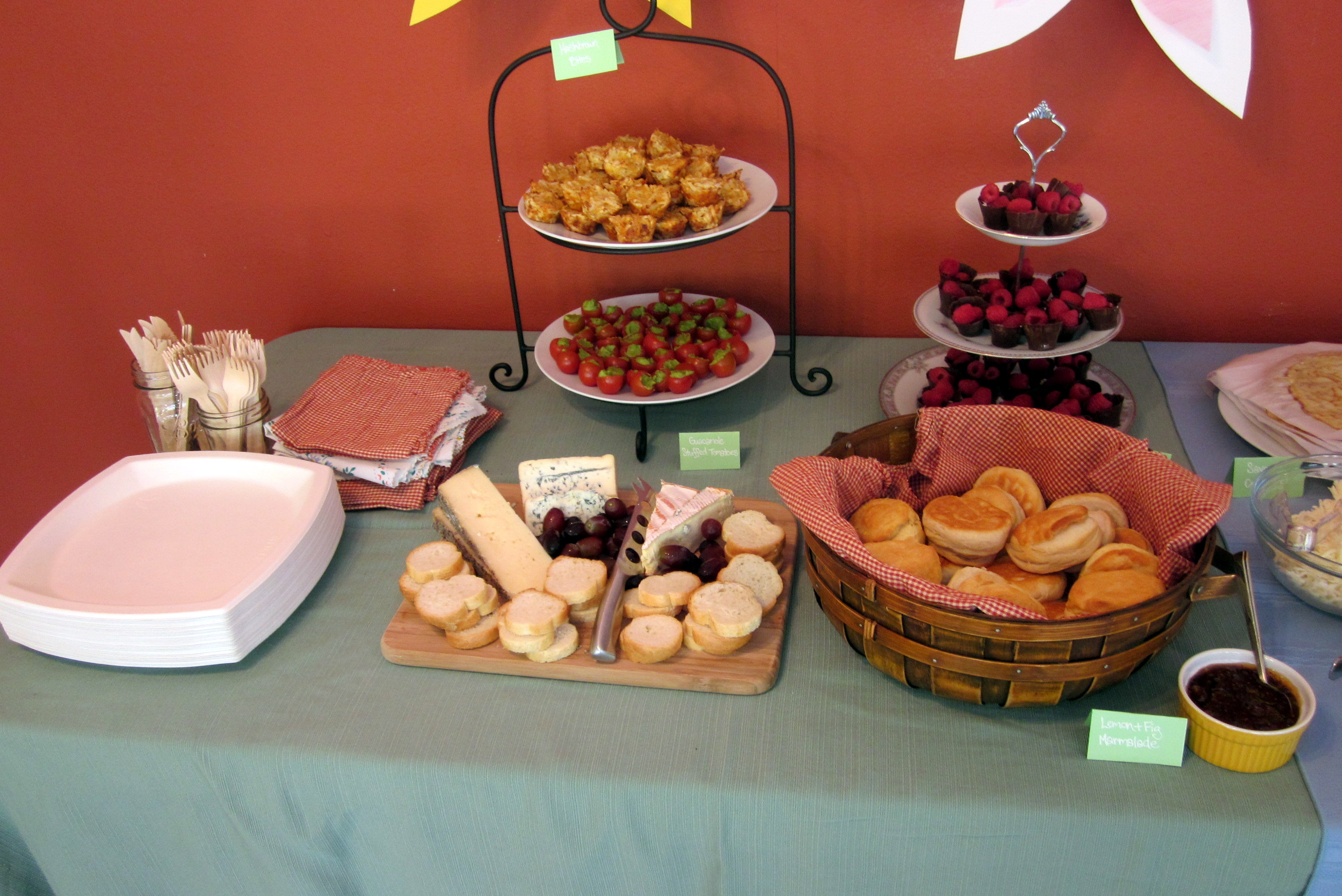The food table was focused on semi-DIY crepes. I set out spinach, mushrooms, ham, and mozzarella cheese for savory crepes. For sweet crepes, there were strawberries, bananas, nutella, honey, powdered sugar, and whipped cream. People used the table grill to heat up their crepes.