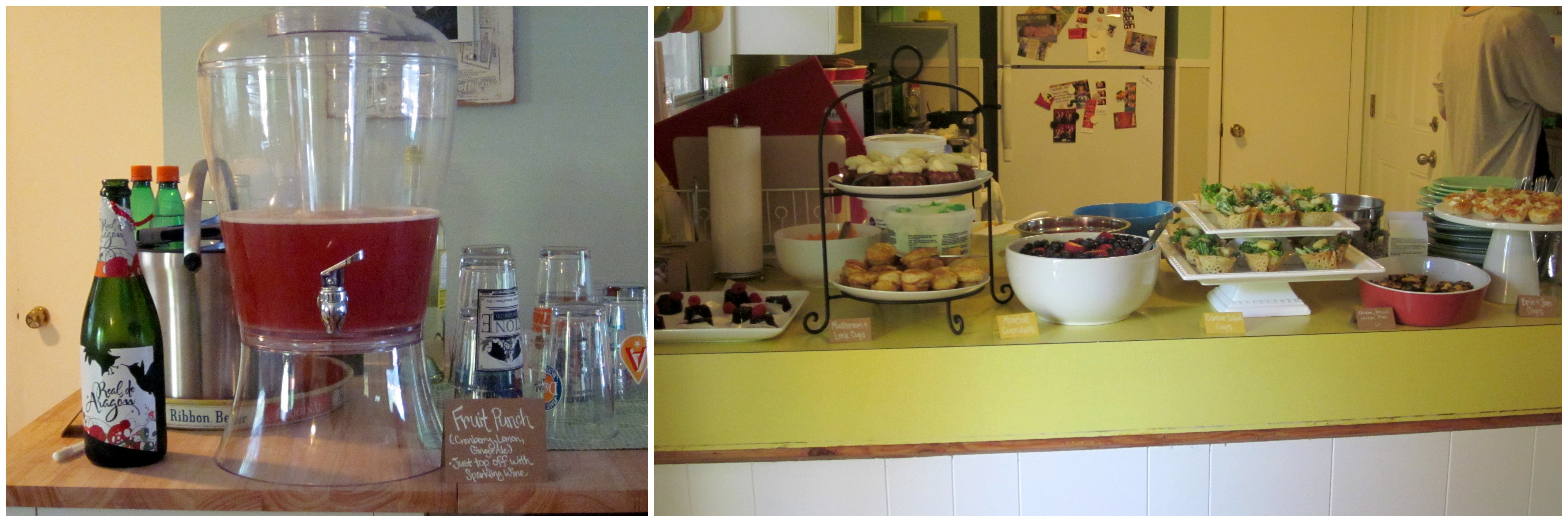 - Other drink options: sparkling water, hot tea, beer, and more wine brought by friends–although most ladies just drank the punch.
